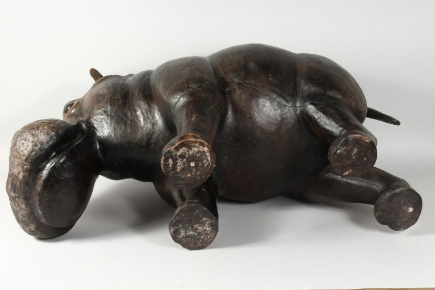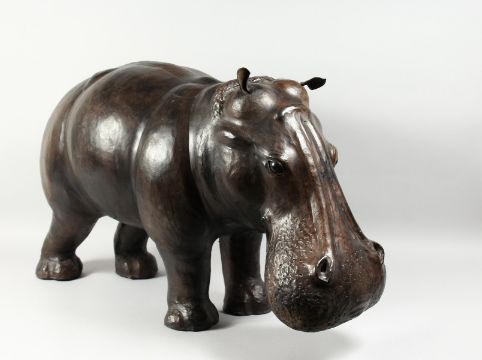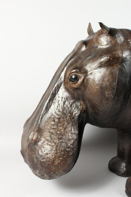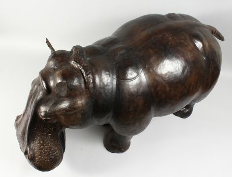 A GOOD LEATHER HIPPOPOTAMUS STOOL OF LARGE SIZE, Probably for LIBERTY & CO.