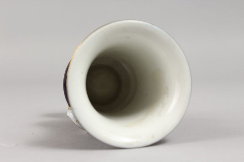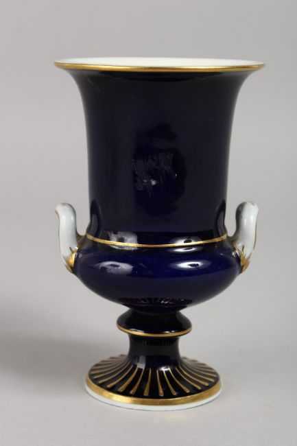 A GOOD 19TH CENTURY MEISSEN RICH BLUE URN SHAPED VASE, painted with a panel of flowers.