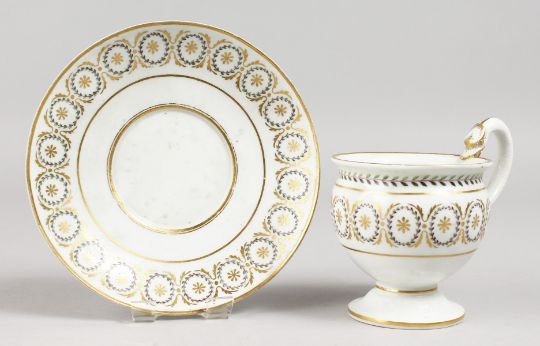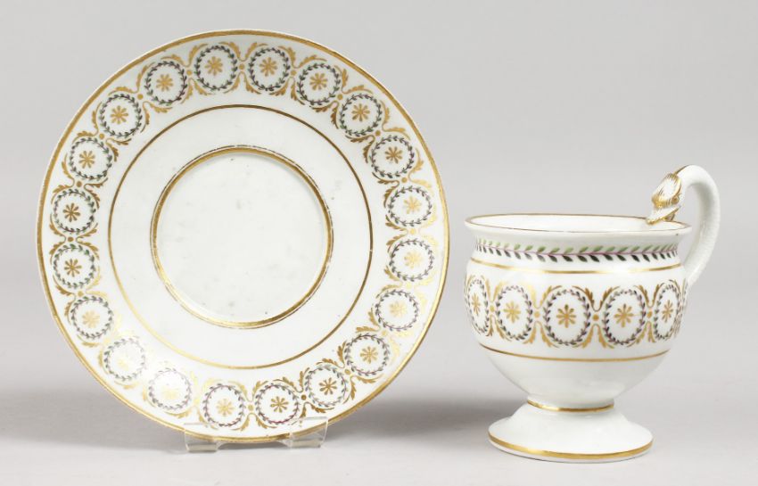 A GOOD MEISSEN CUP AND SAUCER.