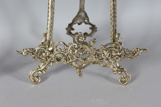 A GOOD LARGE PAIR OF BRASS EASELS.