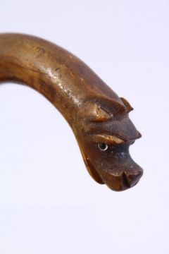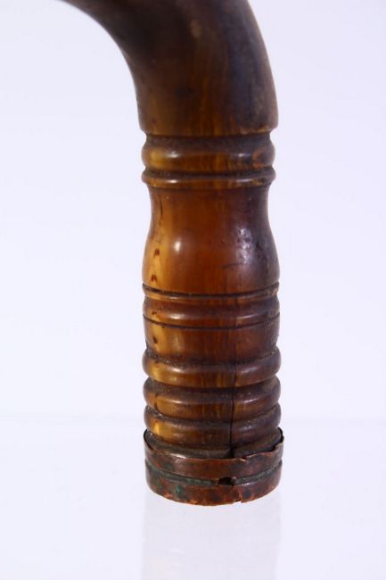 A GOOD 19TH CENTURY CHINESE CARVED RHINO HORN DOG WALKING STICK HANDLE, the handle carved to depict a dogs head, 10cm x 9cm, fitting a cane no larger than 0.7cm.