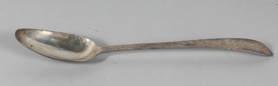 A GEORGE III IRISH SILVER BRIGHT CUT TABLESPOON.