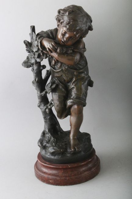 A GOOD PAIR OF BRONZED SPELTER FIGURES OF A YOUNG BOY AND GIRL.