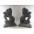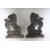 A PAIR OF CAST IRON RAMPANT LION DOOR STOPS.