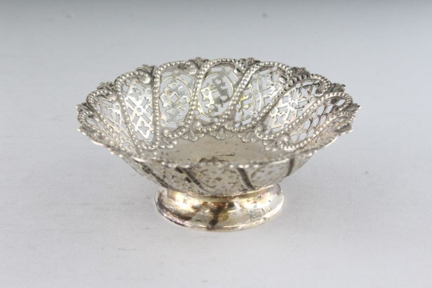 AN OVAL SILVER BONBON DISH, Sheffield 1996, and A SMALL CIRCULAR TAZZA (2).