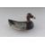 A CARVED WOOD AND PAINTED DECOY DUCK.