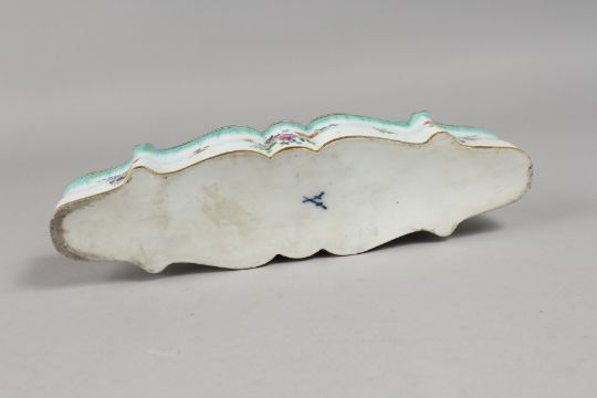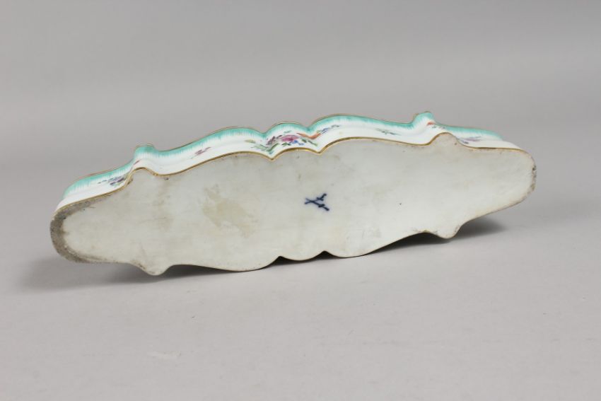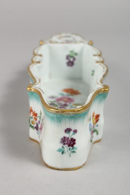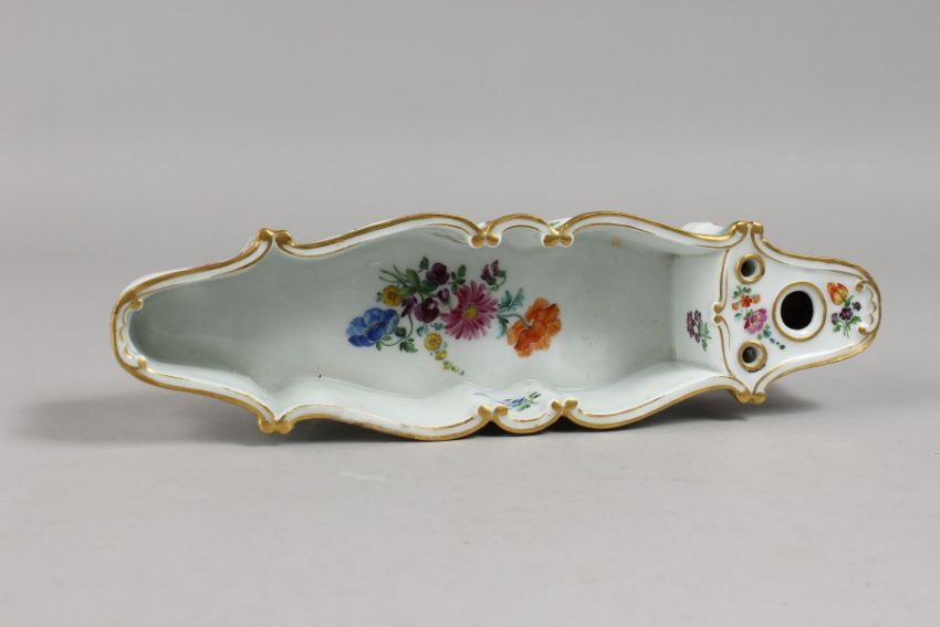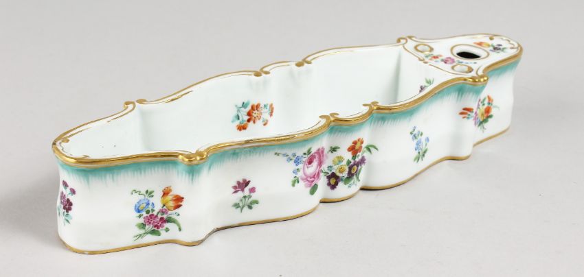 A RARE MEISSEN LONG INKWELL painted with flowers.