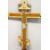 A LARGE RUSSIAN ORTHODOX PAINTED WOODEN DOUBLE SIDED THREE BAR CROSS.