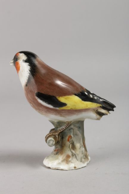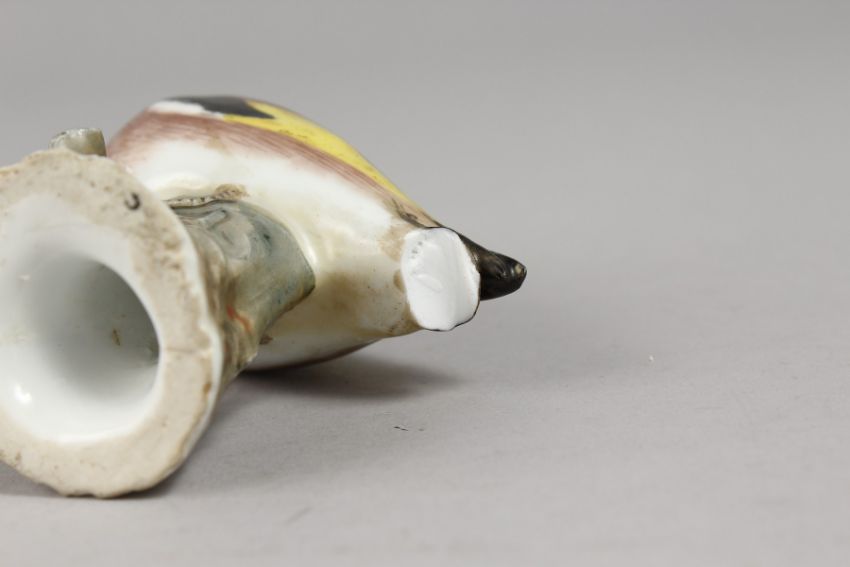 A 19TH CENTURY MEISSEN BIRD on a branch.