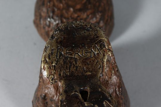 A BRONZE OWL INKWELL.