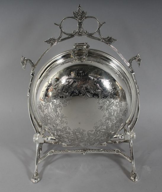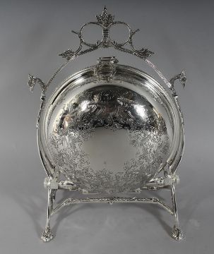 A SILVER PLATE CIRCULAR SHAPED BISCUIT AND CHEESE STAND.