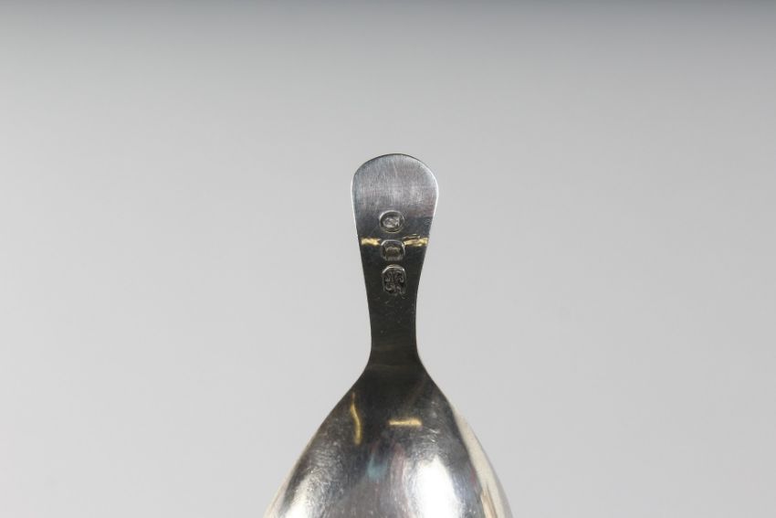 A GEORGE III OVAL BOWL CADDY SPOON.
