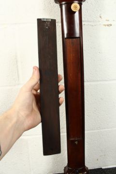A VERY GOOD GEORGE III MAHOGANY BOWFRONT STICK BAROMETER by PASTORELLI & CO., LONDON, with engraved silvered dials and urn shaped reservoir.