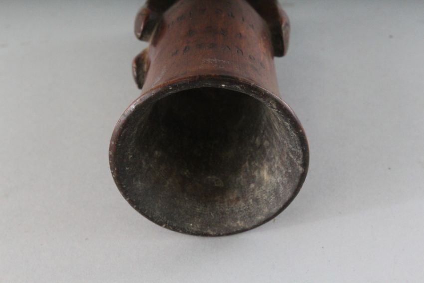 A SOUVENIR FROM PITCAIRN, carved wood hand holding a vase.