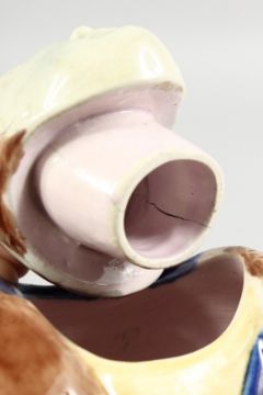 A MINTON MAJOLICA STYLE CHINAMAN TEAPOT.