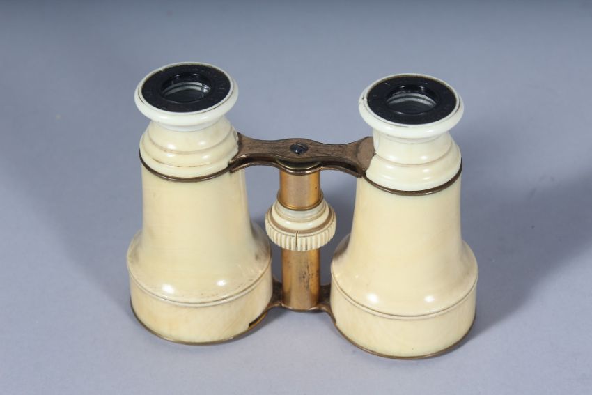 A PALAIS ROYAL IVORY CASED PAIR OF OPERA GLASSES.