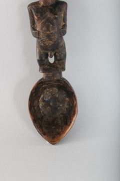 A CARVED WOOD TRIBAL SPOON.