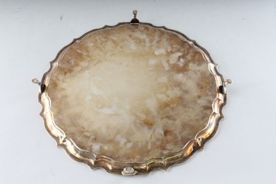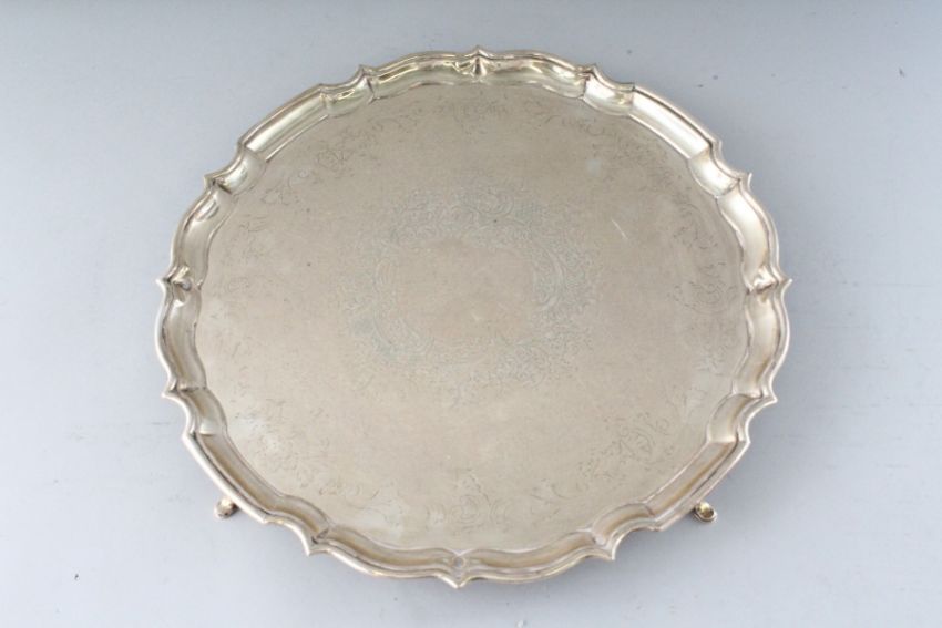 AN E.P.N.S. ENGRAVED PLATED SALVER.