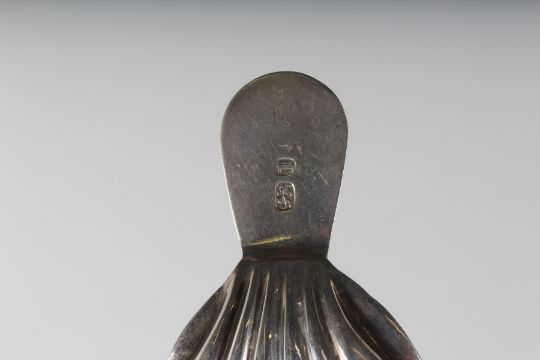 A GEORGE III SHELL BOWL CADDY SPOON.