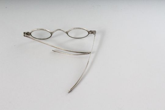 A RARE PAIR OF VICTORIAN SILVER SPECTACLES and A GEORGIAN PAIR (2).