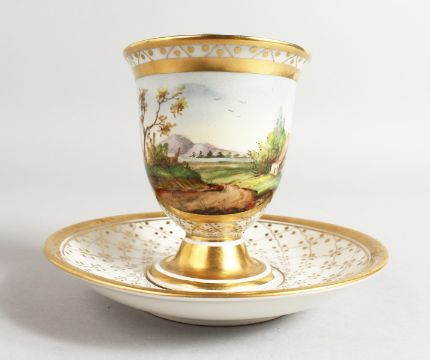 A BERLIN LANDSCAPE CUP AND SAUCER.