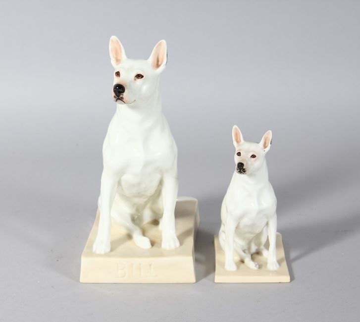 A RARE ROYAL WORCESTER BULL TERRIER, modelled by DORIS LINDNER, inscribed BILL, and SMALLER VERSION.