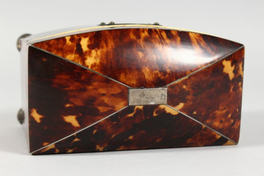 A GOOD REGENCY TORTOISESHELL SHAPED DOMED TOP TWO-DIVISION TEA CADDY on four bun feet.