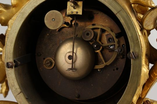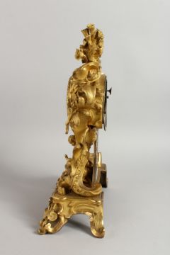 A SUPERB FRENCH LOUIS XVI DESIGN GILT BRONZE CLOCK with blue and white Roman numerals, the case with flowers, scrolls and two boys.