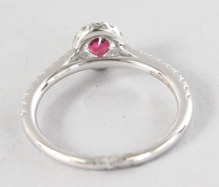 A WHITE GOLD OVAL SPINEL (0.48cts) PAVE DIAMOND (0.32cts) RING.