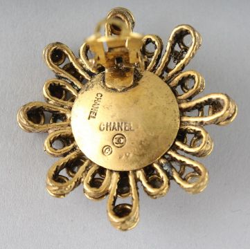 A PAIR OF CHANEL DIAMANTE AND RED STONE EAR CLIPS.