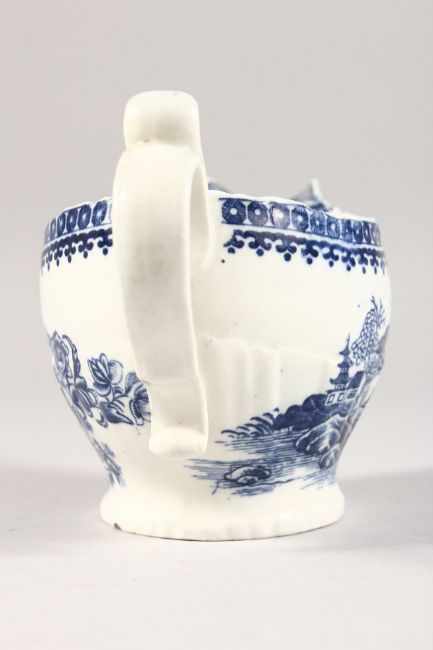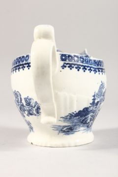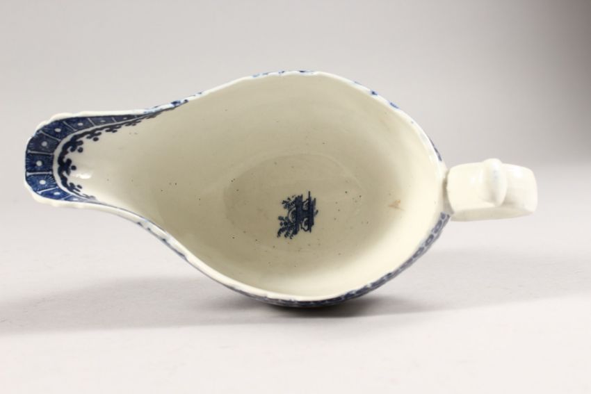 A WORCESTER BLUE AND WHITE SAUCEBOAT, Fisherman and Cormorant.