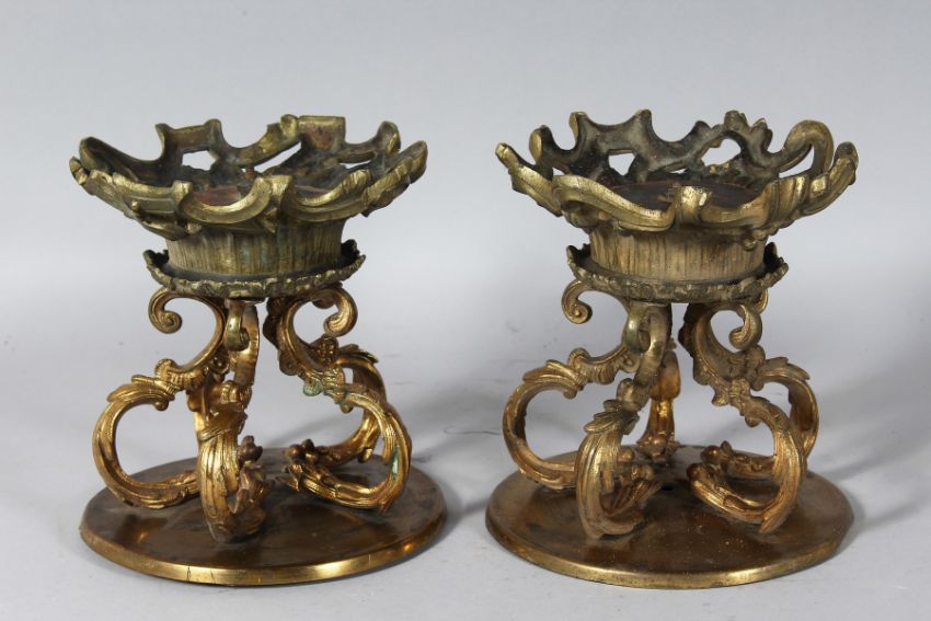 A PAIR OF 19TH CENTURY FRENCH GILT CIRCULAR STANDS.