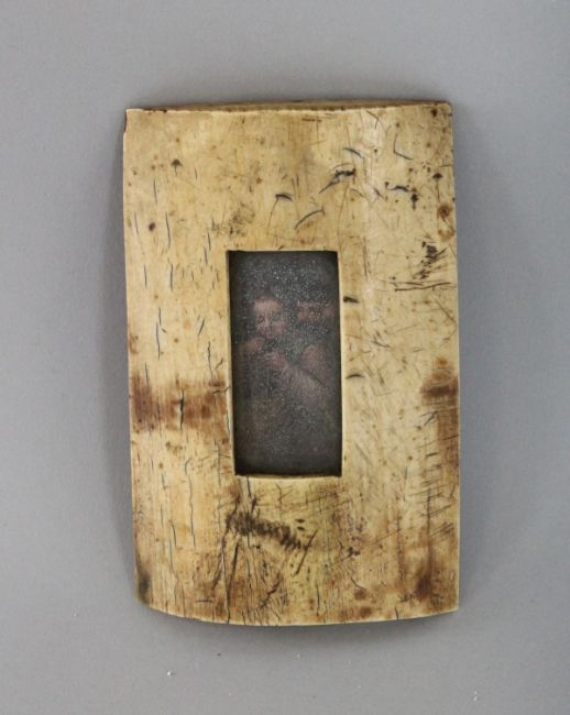 AN 18TH CENTURY DOMED BONE PICTURE FRAME with a portrait.