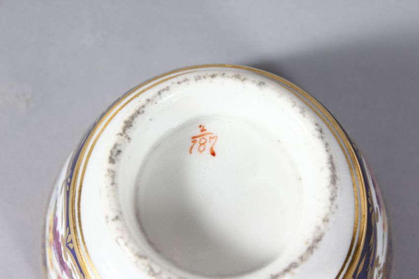 A DERBY CUP AND SAUCER, A CLARET GROUND MUG and A SPODE SPILL VASE.