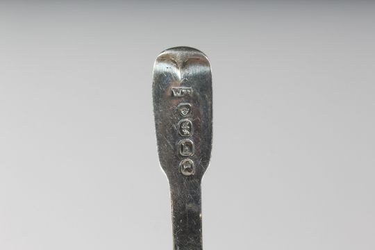 A GEORGE IV FIDDLE PATTERN CADDY SPOON.