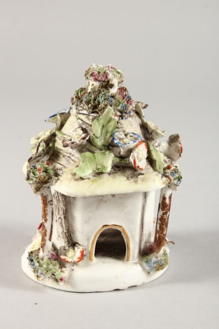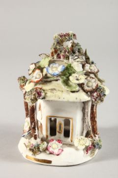 A COALPORT PORCELAIN FLOWER ENCRUSTED PASTILLE BURNER.