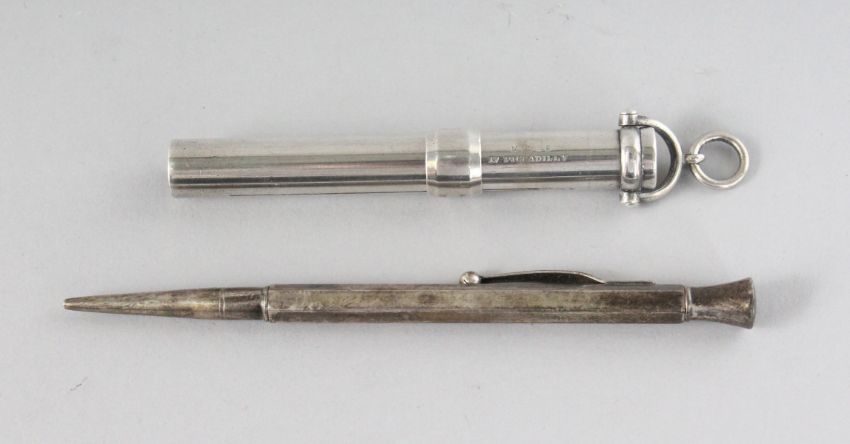 A SILVER PENCIL and A VICTORIAN SILVER TUBE (2).