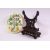 A GOOD SMALL CHINESE JADE TABLE SCREEN, the oval panel onlaid with various hardstones depicting a fox beneath a tree, mounted on a carved and pierced hardwood stand, overall 30cm high x 14cm wide.