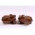 A GOOD PAIR OF CHINESE 19TH CENTURY TERRACOTTA FORMED LION DOG FIGURES, Modeled as male and female, the mirrored pair with glazed teeth, eyes and highlights, in seated position bearing their teeth, 15cm x 15cm.