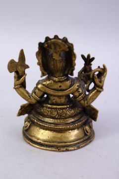 A SMALL 19TH / 20TH CENTURY INDIAN BRONZE FIGURE OF GANESH, in a seated position holding multiple objects, 10.5cm high.
