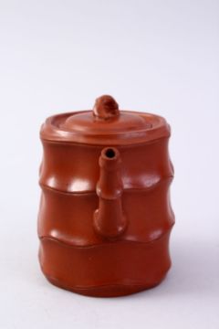 A GOOD CHINESE YIXING CLAY BAMBOO FORMED TEA POT, The base with an impressed seal mark, 11cm high.