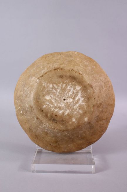 AN EYGPTIAN ALABASTER SHALLOW CIRCULAR BOWL, 23cm diameter.