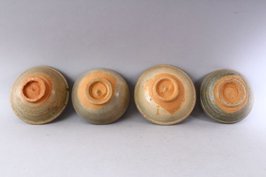 A GROUP OF FOUR EARLY CHINESE EARTHENWARE CIRCULAR BOWLS, various sizes.