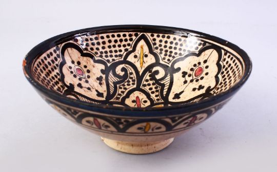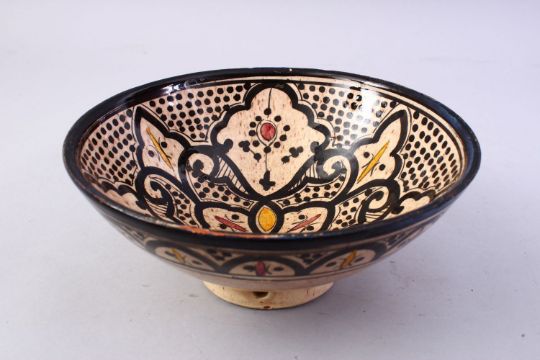 A GOOD ISLAMIC SIGNED POTTERY BOWL - SAFI, the interior decorated with formal floral design, the base signed, 22cm.