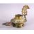 AN UNUSUAL EARLY ISLAMIC POSSIBLY ANDALUSIAN SPANISH BRASS OIL LAMP, with moulded decoration, 17cm wide.