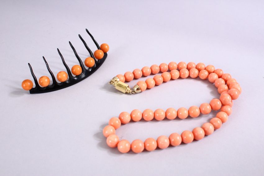 A SEA BAMBOO / CORAL NECKLACE, and similar hair slide.