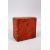 A CHINESE RED LACQUER SQUARE FORM CALLIGRAPHIC BOX & COVER, the base with a gilded mark, 12cm
