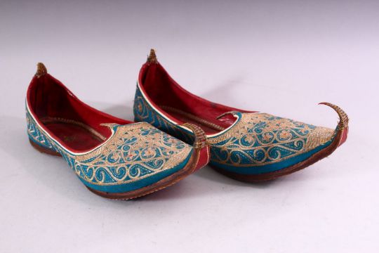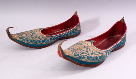 A PAIR OF TURKISH EMBROIDERED LEATHER SHOES.
