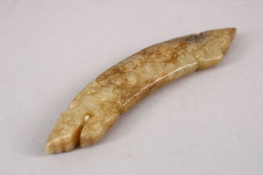 A GOOD CHINESE WARRING STATES STYLE CARVED JADE PENDANT OF CHILONG, 10cm.