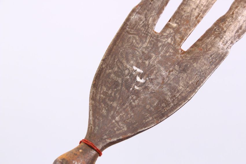 TWO 19TH CENTURY PERSIAN QAJAR SILVER INLAID STEEL SPEAR HEADS - both 53cm long.